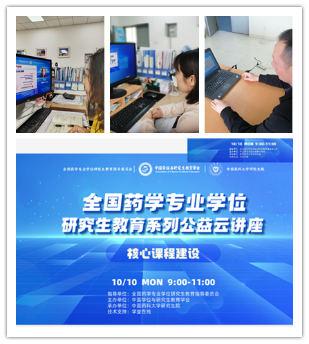 为推进新时代药学专业学位研究生教育高质量发展,进一步丰富药学专业学位研究生教育课程建设与师资培训相关内容,在全国药学专业学位研究生教育指导委员会的指导下,由中国学位与研究生教育学会主办,中国药科大学研究生院承办的全国药学专业学位研究生教育系列公益云讲座第二期“核心课程建设”讲座于2022年10月10日上午9:00-11:00在学堂在线•雨课堂举办,会议特邀《新药审批与注册》、《药品标准实务》、《医药企业管理理论与实务》、《临床药动学》等药学专业学位研究生核心课程指南编写负责人,围绕教学前沿、教学方法、教材建设、课程设计、课程思政、企业实践等,就新时代如何开展药学专业学位研究生核心课程建设进行了报告。
