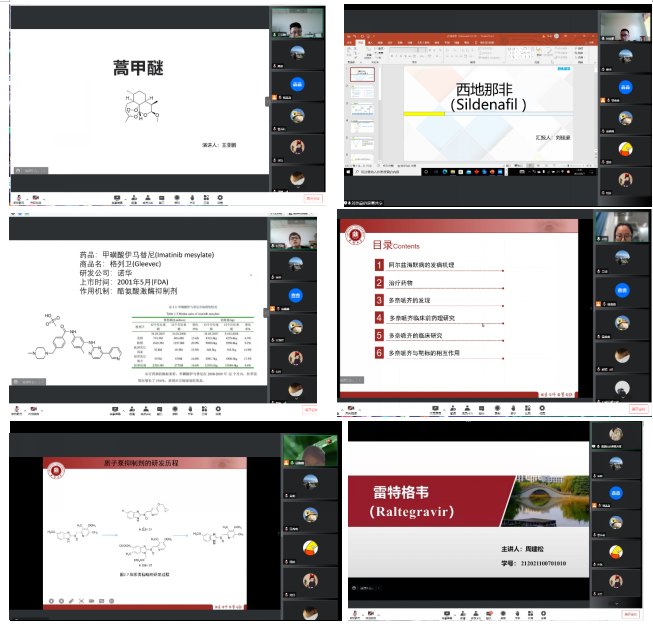 同学们围绕“新药研发案例研究”为主题进行汇报,分别对氟西汀、埃索美拉唑、氨氯地平、左氧氟沙星、西地那非、多奈哌齐、伊马替尼、蒿甲醚、奥司他韦、雷特格韦、克唑替尼这十一个药物的研发案例进行分享。研讨过程中,与会老师和同学们进行了积极交流,张翔老师及时对同学们所分享的内容进行点评,并对现场师生提出的问题进行补充和延伸,加深了研讨交流的深度。