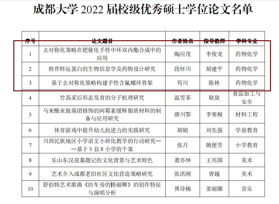 根据《成都大学优秀硕士学位论文评选办法》(成大研〔2020〕 26 号)文件精神,学校组织开展了 2022 届校级优秀硕士学位论文的评选工作,共评选出 10 篇学位论文为校级优秀硕士学位论文,体育平台 陶应茂、段怀川、苟川3位同学入选。