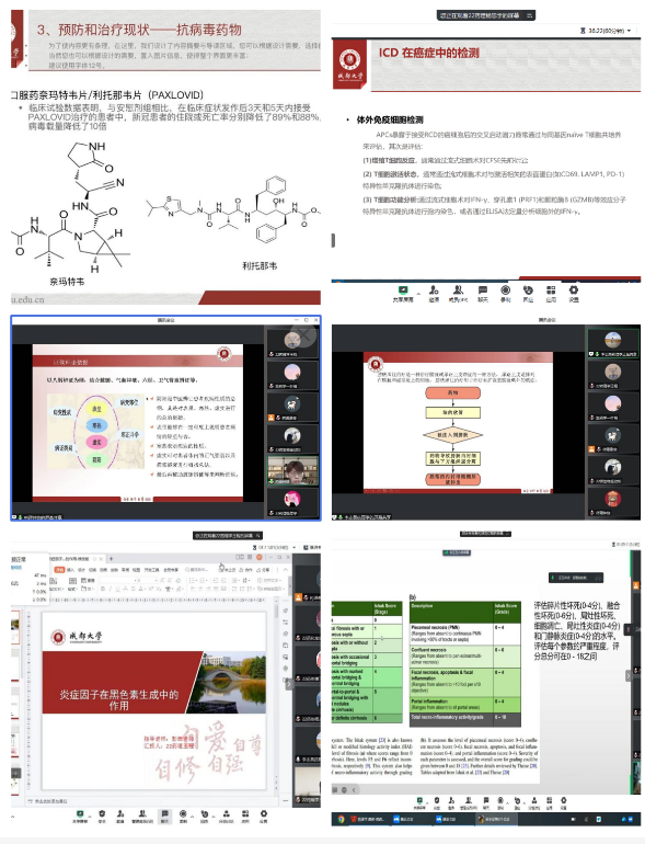 三年的疫情肆虐使同学们对新冠病毒有了切身的体会和深刻的印象,正是因为这段难忘的经历,22级药理谢俊同学选择解读奥密克戎病毒,内容包括Omicron的特点和生命周期、潜在靶标、预防和治疗现状,让参会人员更清楚地了解了Omicron的结构特点、预防和治疗药物,并给了一个忠告:Omicron不会是最终变体,甚至产生一种更糟糕的、与Omicron无关的变体。