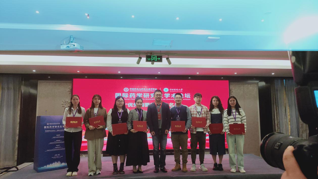 据悉,本次论坛组委会共收到国内外150余所高校及科研院(所)近800篇投稿经过大会组委会的评审,国内外共有138名同学获优秀摘要奖,65名同学获优秀壁报奖。比赛过程中,在带队老师陶静及张晓老师的带领下,我校参赛学生参加了论坛中来自全球高校著名专家学者做的药学领域前沿学术讲座,并和来自国内外高校的硕博研究生进行了充分的学习和交流,展示了成都大学药学研究生的学术水平与青春风采。