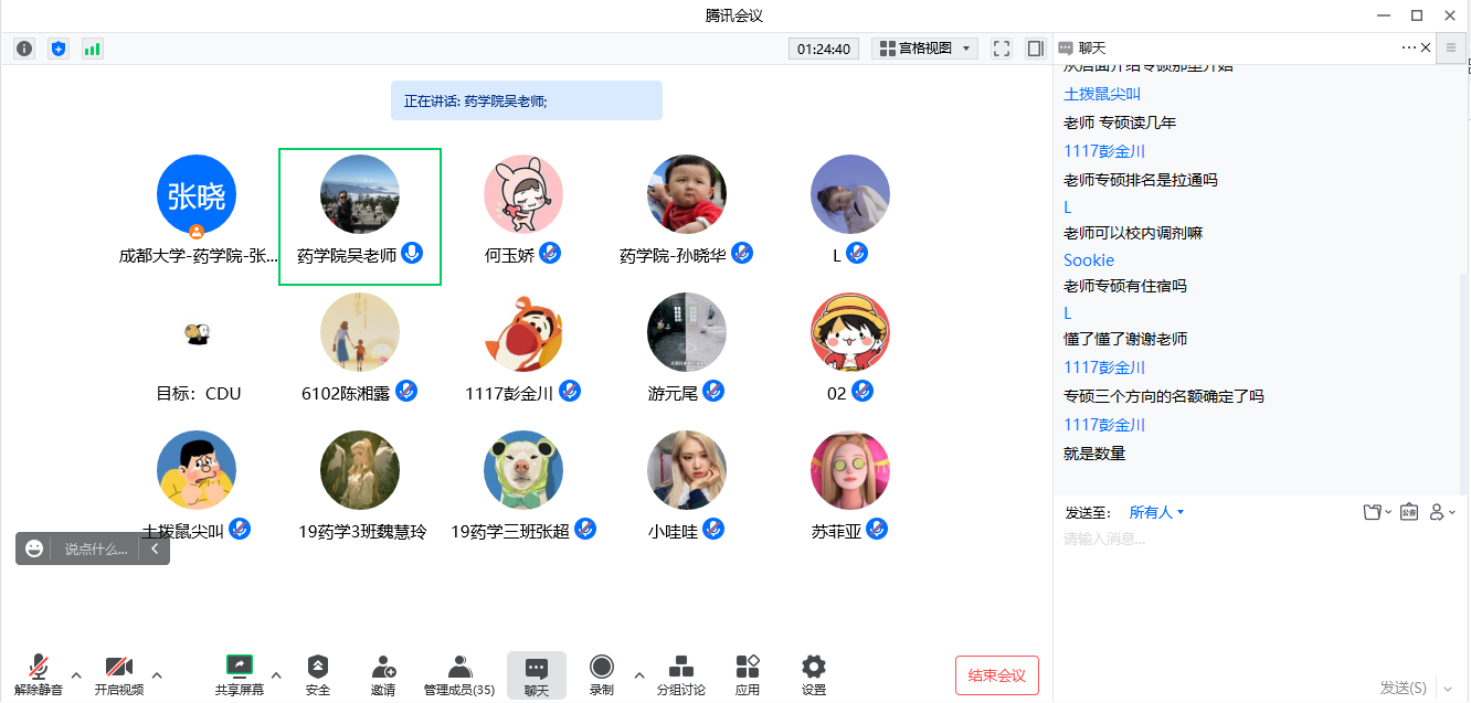 2022年9月30日上午10点30分,体育平台 教务管理办公室(研究生)于腾讯会议线上组织开展了硕士研究生招生工作宣讲,体育平台 导师何玉娇通过PPT向参会同学详细介绍了体育平台 的基本情况,对于同学们在会上提出的问题,体育平台 教务管理办公室(研究生)则逐一进行了详细的解答。