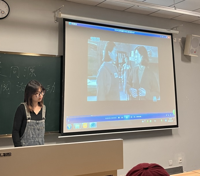 活动中,赵慧慧同学还选取了一些经典的影视片段进行鉴赏。此后马恩典同学为大家朗读了经典原文摘录。通过详细解读,赵慧慧同学向大家展示了作者巴金通过文字所营造的紧张氛围和鲜明的人物形象。大家纷纷表示,在赵慧慧同学的分享下,更加深入地理解了小说中的精髓和内涵。
