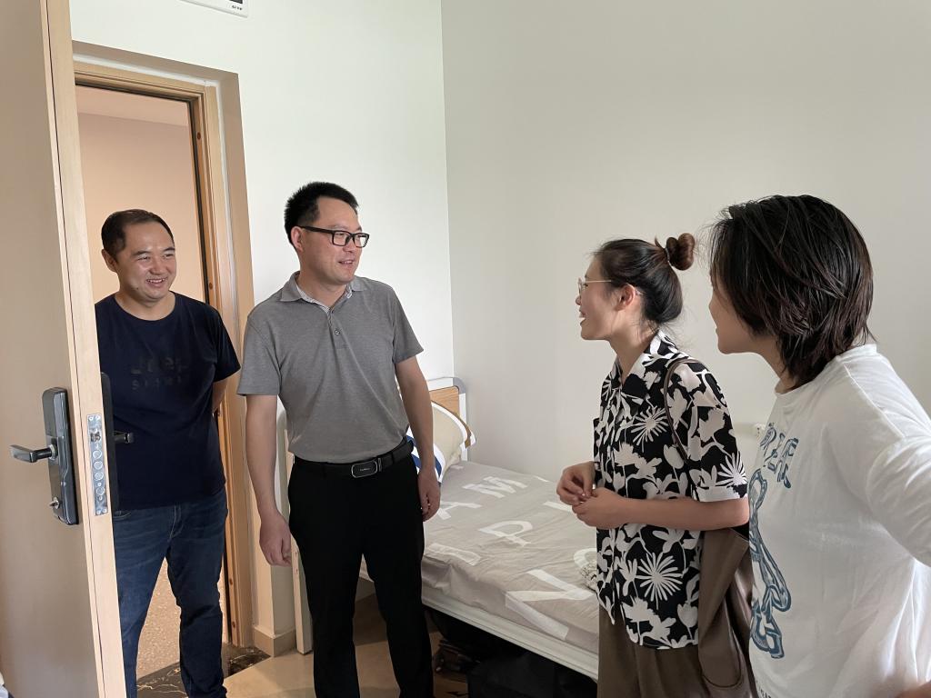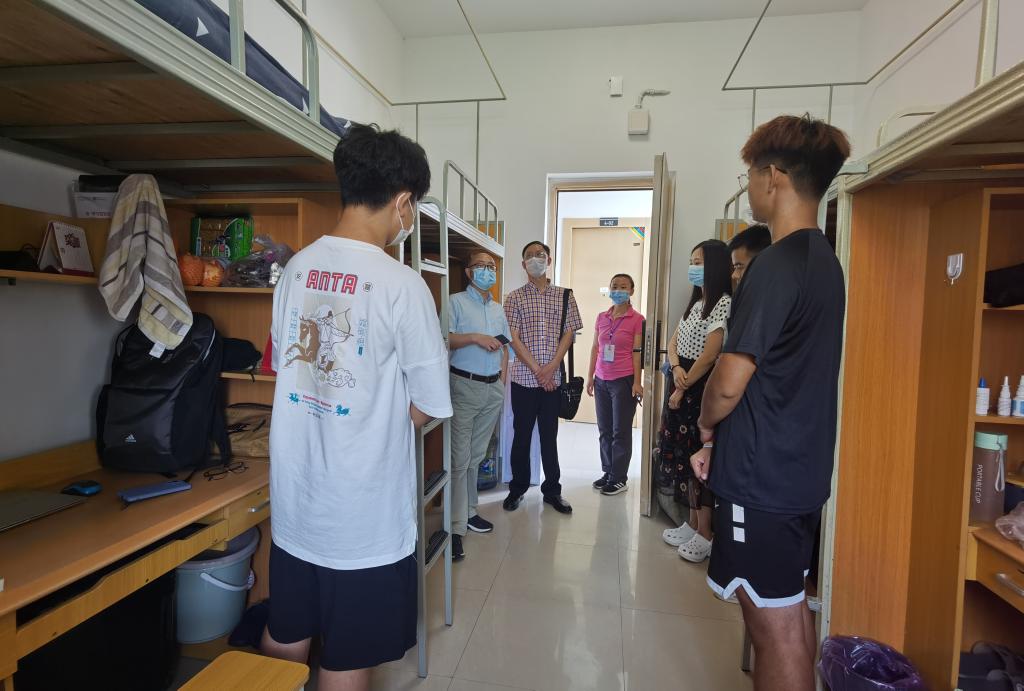 当大家走进干净整洁的寝室,不禁为同学们竖起大拇指,连连点头称赞。同学们也非常有礼貌地向领导和老师们问好,介绍近期的个人情况,将自己的困惑和疑虑请教老师们,老师们也积极主动地解答问题,帮助同学们做好个人 成长规划。