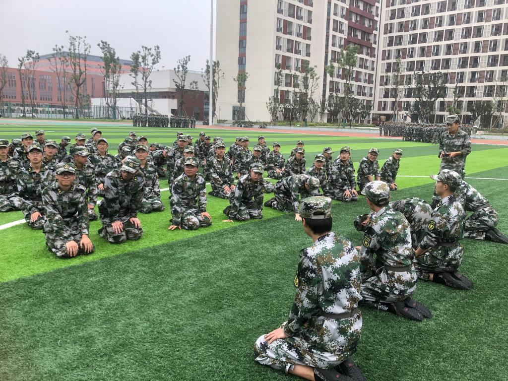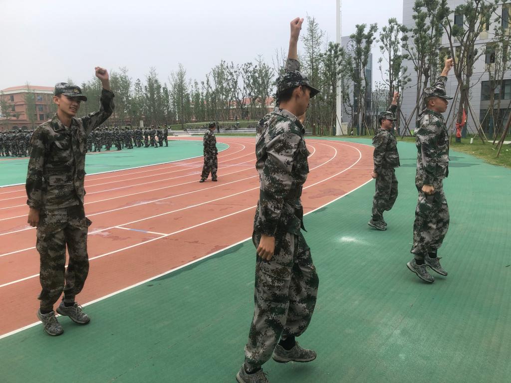虽然是阴天,但是依然感觉闷热。在紧张严肃的训练间隙,教官和同学们一起唱军歌、跳健身舞,教官还教同学们拉伸,以消除疲劳。拉近了教官和同学之间的距离,让军训氛围严肃又活泼。