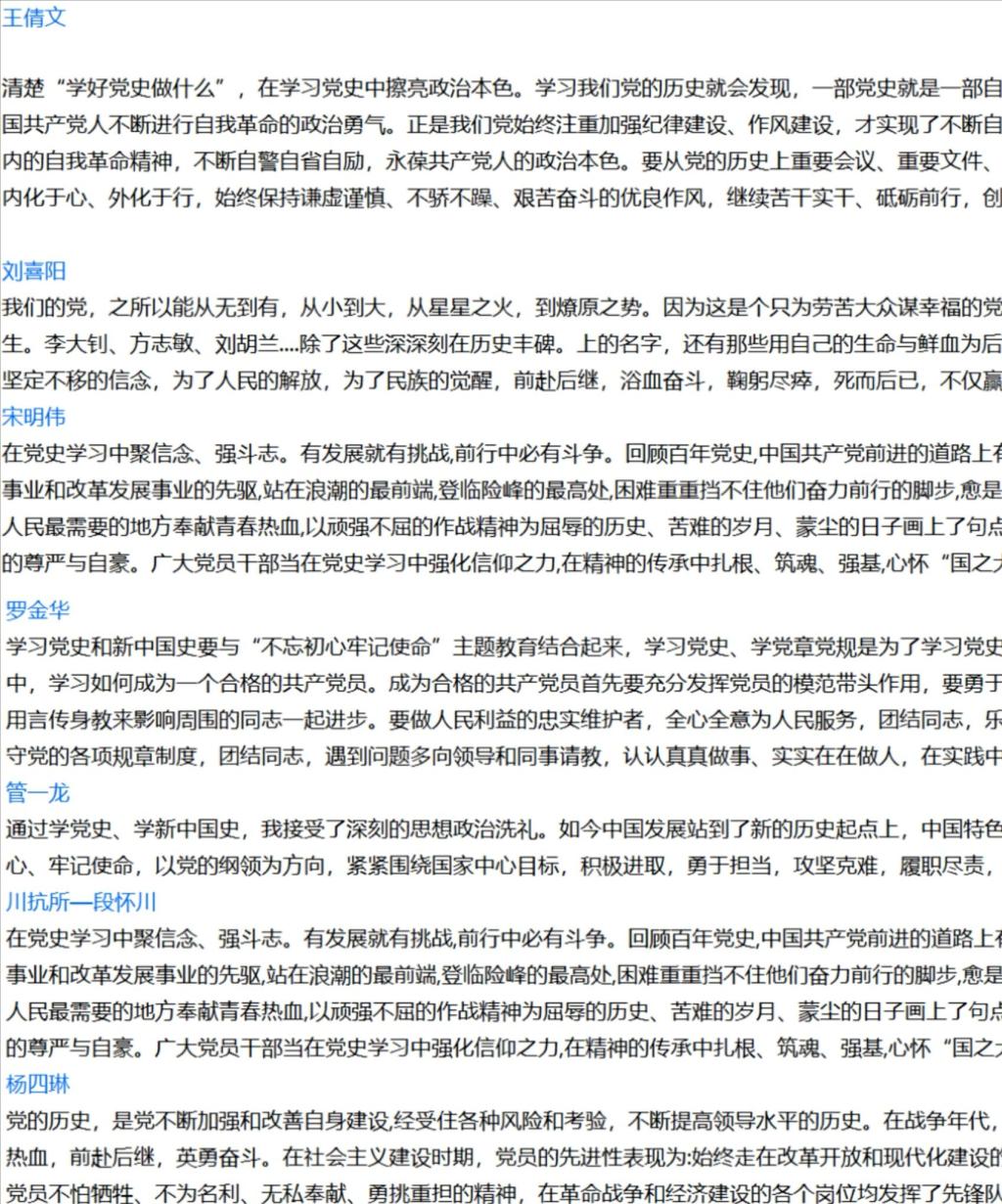 其他党员同志纷纷表示,一定会认真学习党的光辉历史,坚守入党初心,做到学习有收获、思想受洗礼、干事勇担当,牢固树立知党史党情、一生跟党走的坚定信念,以优异表现献礼建党一百周年。