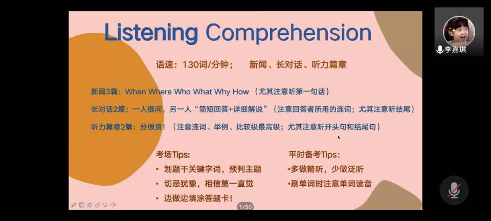 李嘉琪同学分享她备战四级考试的经验和技巧。