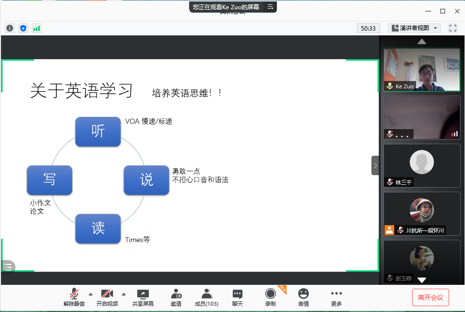 左柯从本科、硕士、博士三个学习阶段,为本科同学分享了英语和专业课的学习经验,考研的准备以及对学生活动的看法等;对研究生的新同学们提出了几点关于文献检索阅读以及实验和论文写作的建议;他还分享了在以色列留学的学习生活片段。左柯强调,同学们要处理好学习、生活和工作之间的关系,确立奋斗目标,形成正确理想信念,充分利用大学时光,努力朝规划的目标奋斗。