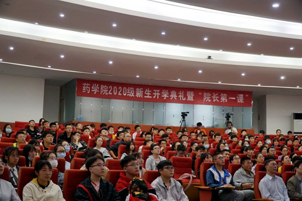 携手并进表示热烈的欢迎,祝贺同学们经受住了疫情与升学的双重大考,开启了人生新篇章,希望同学们设立目标、稳步前进,珍惜时间、主动学习,扎根中国、放眼世界,要学以致用,为中国的药学事业发展出力,并用《钢铁是怎样炼成的》中的名言激励同学们:“一个人的一生应该是这样度过的:当他回首往事的时候,他不会因为虚度年华而悔恨,也不会因为碌碌无为而羞耻;这样,在临死的时候,他就能够说:“我的整个生命和全部精力,都已经献给世界上最壮丽的事业——为人类的解放而斗争。”最后郭晓强祝福同学们书写人生精彩画卷,享受快乐充实的校园时光。