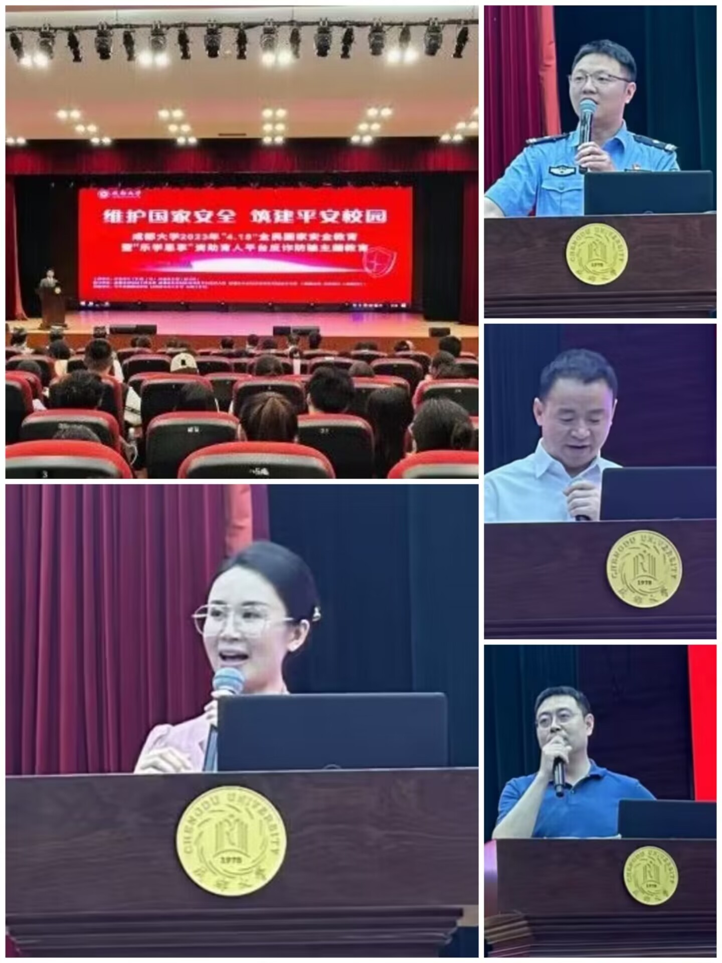 4月18日下午参与安全教育活动讲座聆听了党委常委、副校长王小军,成都市国家安全局人民防线支队长高钰军,龙泉驿区公安分局十陵派出所教导员赵和岗,龙泉驿区公安分局十陵派出所教导员赵和岗、招商银行成都分行风险管理专家任利娟的宣讲,了解到全民国家安全教育的实践意义,维护国家安全与每个人密切相关同时也意识到校园诈骗层出不穷及防范电信网络诈骗常识和技巧需要基本金融安全知识。