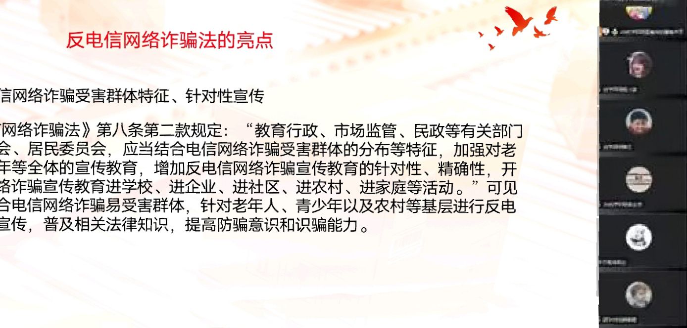 学工办2024.3.5中午13:00在9教D405会议室组织线上线下同时开展了开学《反诈法》学习大讲堂,十大体育平台
