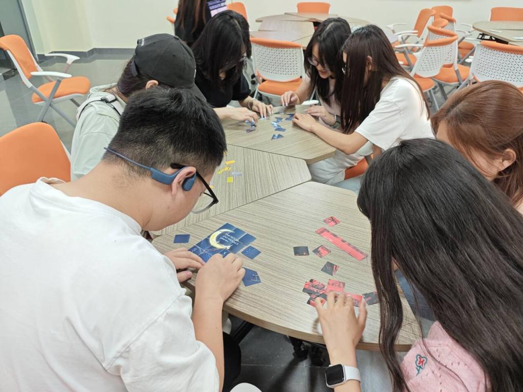 随后的书籍拼图环节将阅读与动手能力完美结合。同学们拼凑被打乱顺序的书籍图片碎片,随着拼图的逐渐完成,一幅幅完整的书籍封面呈现在眼前,同学们不仅收获了成功的喜悦,更在拼图过程中加深了对书籍的印象,感受着阅读带来的成就感。