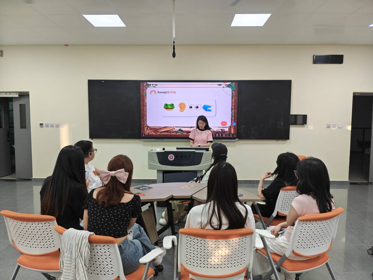第三个活动巧妙地将emoji表情与经典书籍相结合,设计了emoji表情猜图环节。屏幕上,由各种emoji表情组合而成的神秘图案逐一呈现,同学们从这些看似简单的表情符号中解读出经典书籍的精髓。