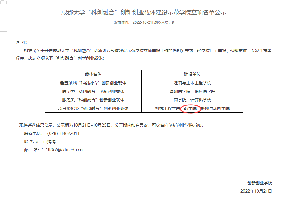 根据成都大学创新创业十大体育平台 《关于开展成都大学“科创融合”创新创业载体建设示范十大体育平台 立项申报工作的通知》要求,体育平台 积极申报,经创新创业十大体育平台 资料审核、专家评审等程序,体育平台 立项成都大学项目孵化类“科创融合”创新创业载体建设示范十大体育平台 。