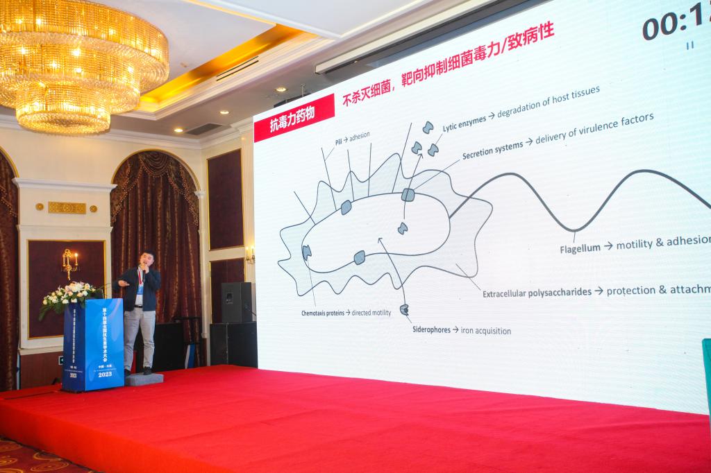 赵克雷研究员做了题为“基于铜绿假单胞菌群体感应系统的抗菌药物研发进展”的大会报告,围绕抗耐药铜绿假单胞菌新药研发,从抗毒力药物研发现状、群体感应系统靶向药物的优劣、高通量体内外筛选与功效验证平台三个方面总结了研究进展,并对以群体感应系统为靶向的抗毒力药物研发方向和亟需解决的问题进行了思考与展望。