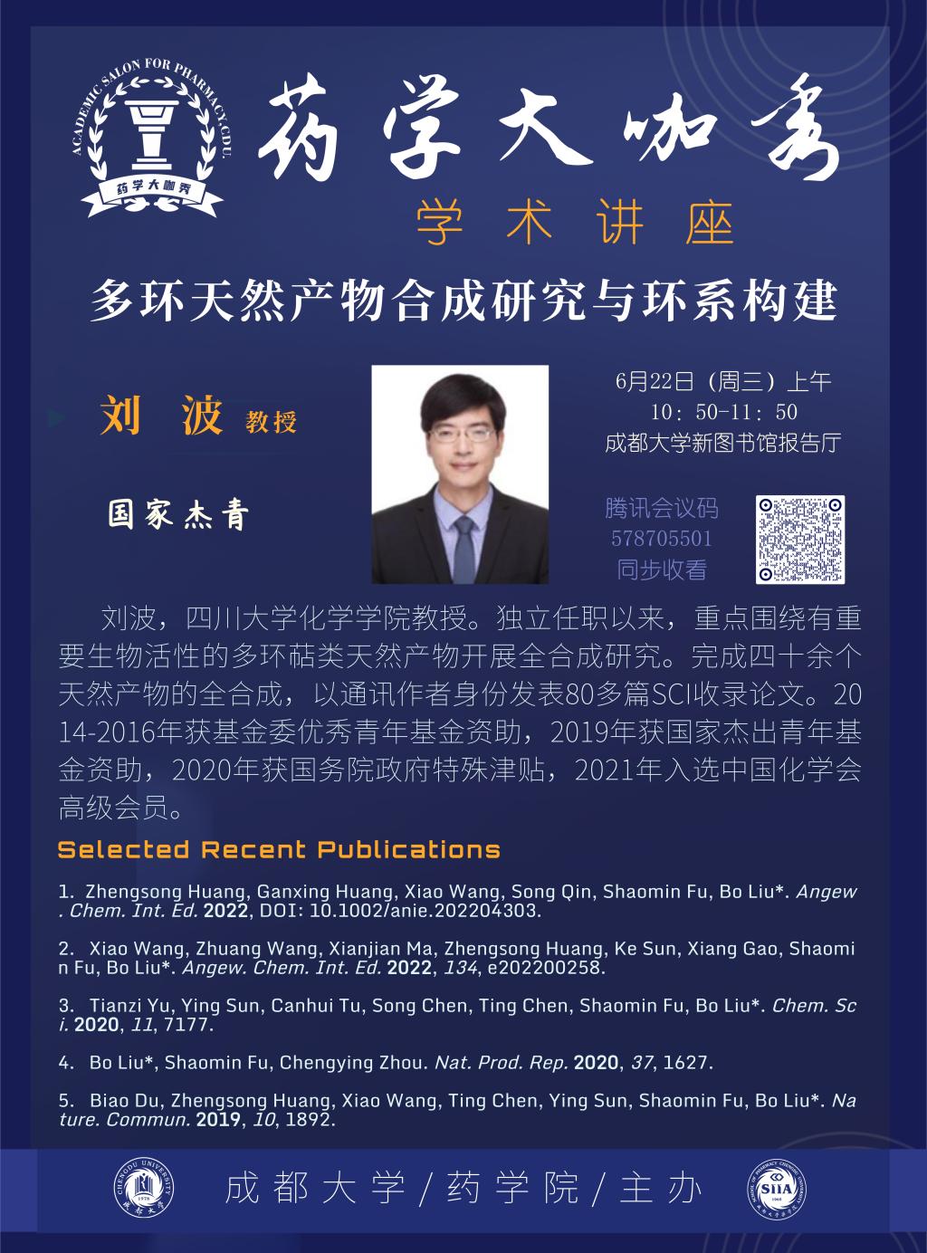 【药学大咖秀】刘波:多环天然产物合成研究与环系构建
