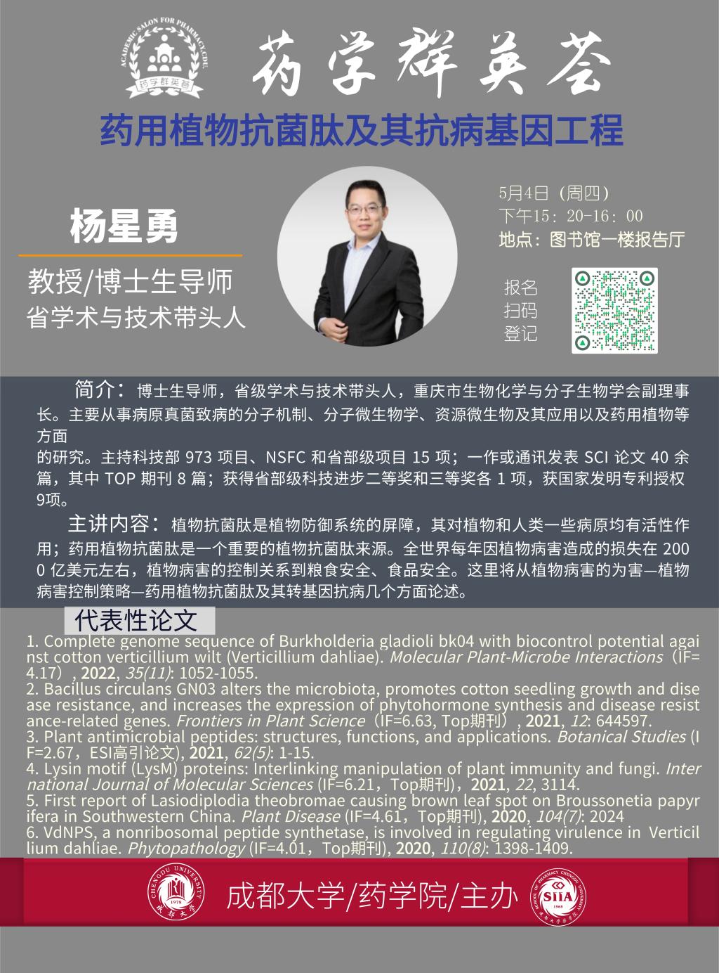 【药学群英荟】杨星勇:药用植物抗菌肽及其抗病基因工程