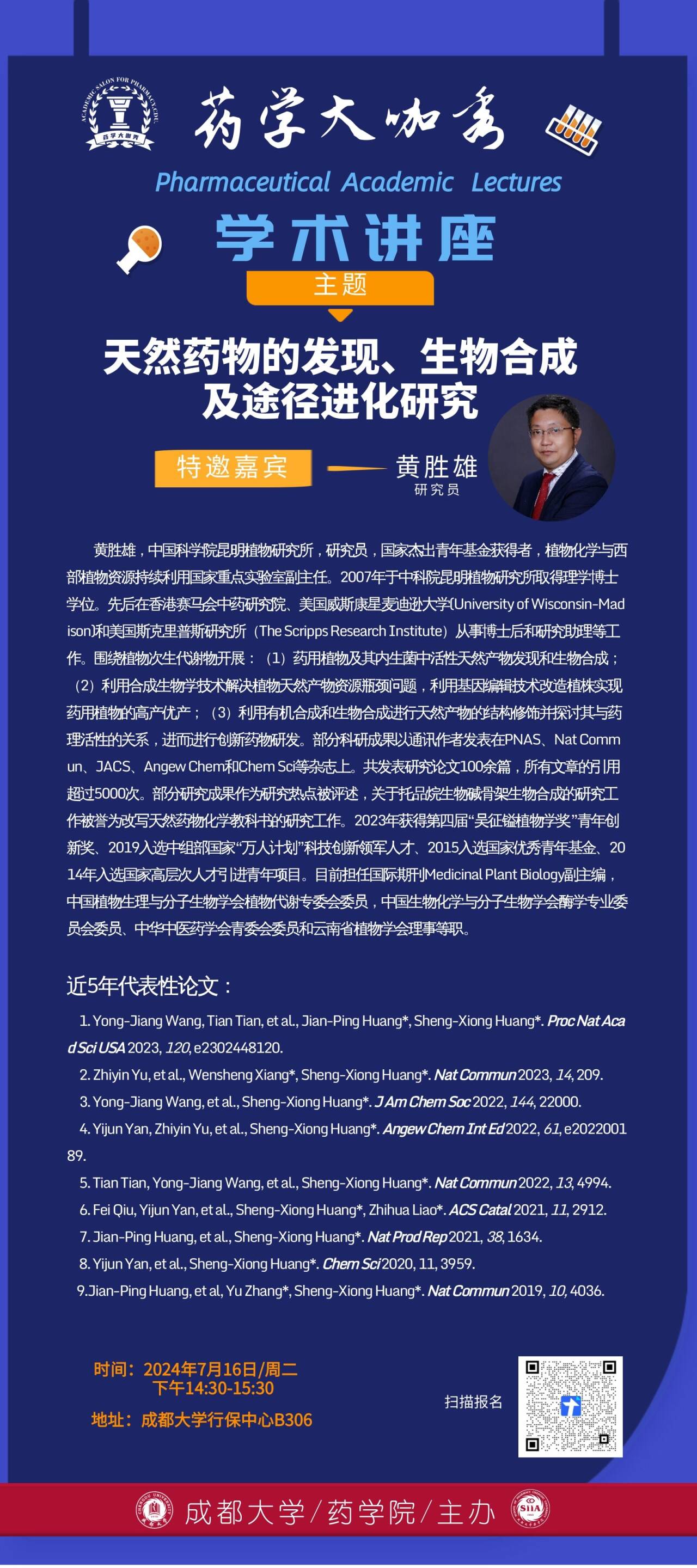 药学大咖秀丨黄胜雄:天然药物的发现、生物合成及途径进化研究