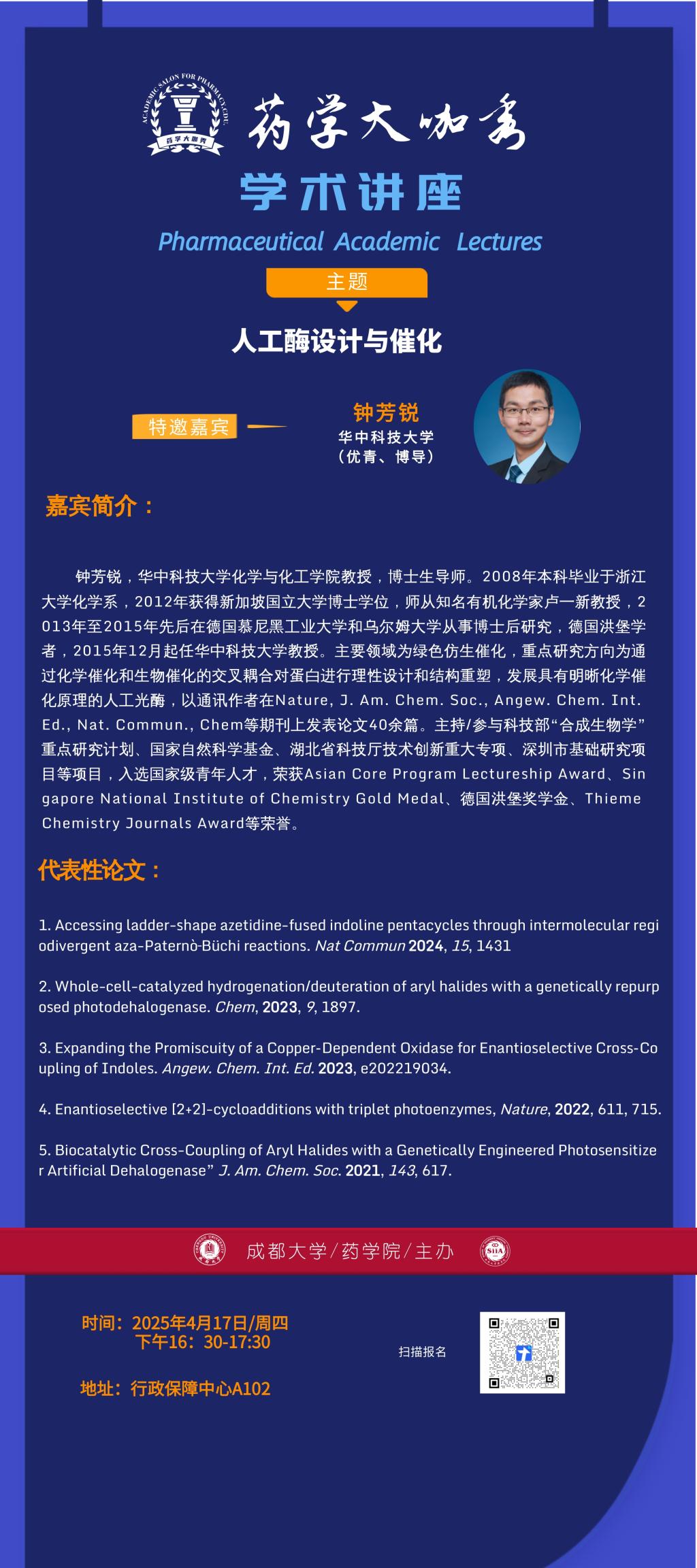 药学大咖秀丨钟芳锐:人工酶设计与催化
