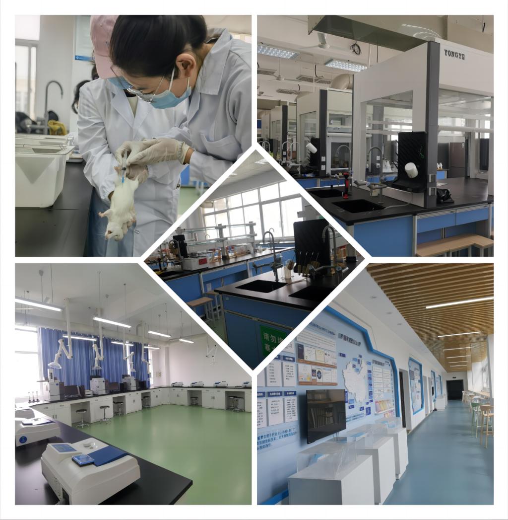 实验中心面积约1500余平方米,仪器设备400余台(件),仪器设备总值600余万元。围绕“院所合一,链上育人”的办学特色,中心实验教学成为“基础实验+实践实训+科技创新+产教融合” 四级实践教学体系下的重要组成部分。中心建有基础化学实验室、基础生物实验室、药学类专业实验室、动物房,主要承担药学、制药工程、药物制剂等专业实验教学任务。中心将实验分成“基础实验+实践实训+科技创新+产教融合”四个实验层次,开设实验课程26门,累计150余个实验项目。