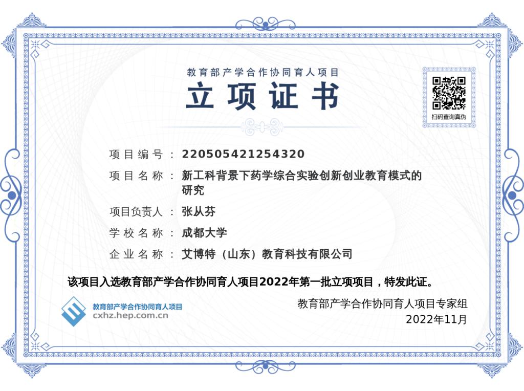 近日,教育部发布《教育部高等教育司关于公布2022年第一批产学合作协同育人项目立项名单的通知》(教高司函〔2022〕8号),体育平台 教师张从芬育人项目“新工科背景下药学综合实验创新创业教育模式的研究”获得立项,为体育平台 产学合作再添新绩。