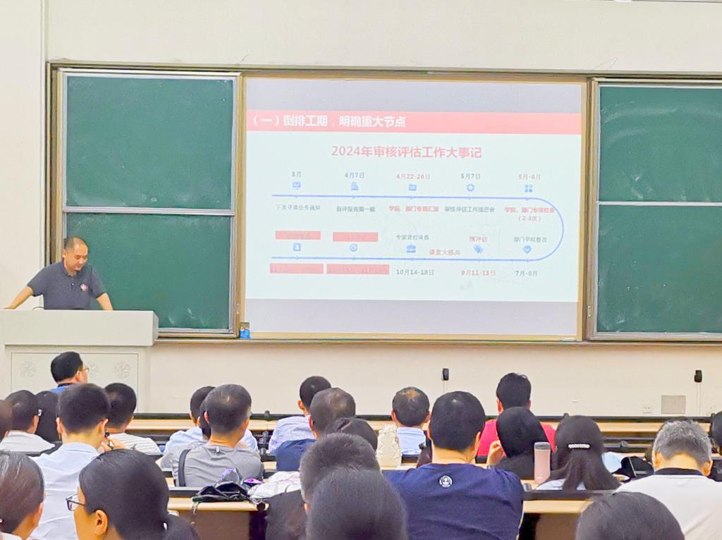 付强副院长在主持中汇报了成都大学本科审核评估大事件和2024迎接审核评估工作大事记。强调了审核评估的目的:是引导高校质量保障体系建设,最终构建“五自”(自觉、自省、自律、自查、自纠)质量文化。质量文化是质量保障体系建设的灵魂和意义。审核评估对于学校的意义:通过审核评估促进学校教学质量的提升,审核评估也是凝聚共识快速发展的契机。付院长向大家详细解读了学校、十大体育平台 ,教师与学生为迎接审核评估应承担的的工作职责与内容,号召全院教职员工凝心聚力、踔厉奋发、全面做好新一轮审核评估工作。