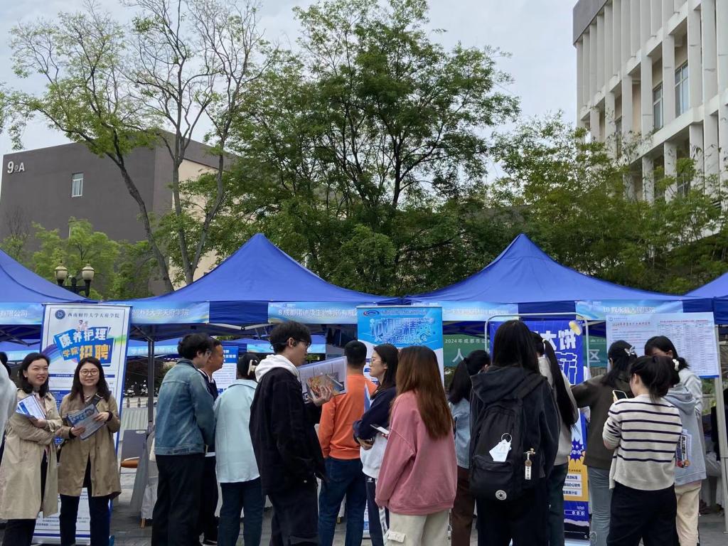2024年4月9日下午,成都大学“职遇橙园,社区同行”2024届毕业生春季系列双选会(第二场)暨大健康行业专场双选会于第九教学楼园区顺利举行。此次双选会吸引了成都地奥制药集团有限公司、成都诺和晟泰生物科技有限公司、西南财经大学天府十大体育平台 、西南儿童康复医院、叙永县人民医院、梧州医学高等专科学校和重庆健康职业十大体育平台 等80余家优质单位带来约1500个岗位需求。体育平台 党委书记阳东、副书记黄金竹来到双选会现场,指导做好双选....