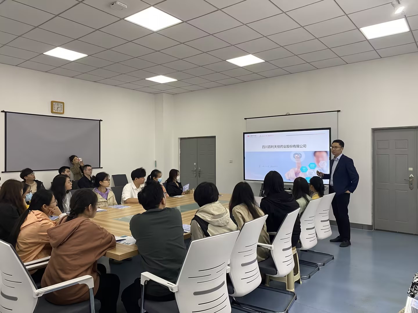 2023年10月18日,四川百利天恒药业股份有限公司一行三人来体育平台 召开专场宣讲招聘。体育平台 党委副书记黄金竹与百利天恒药业药物研发合成部总监万维李、人力资源部陈霞进行了友好交流,黄金竹表示欢迎百利天恒药业前来选聘体育平台 优秀毕业生,希望双方能继续开展在实习、就业方面的深入合作。下午14时30,体育平台 药学应届毕业硕士近50人到场聆听了宣讲招聘,还吸引了部分相关专业毕业生前来参加宣讲。百利天恒药业药物研发合成部总监万维....
