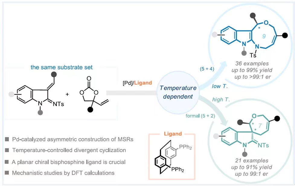 近日,体育平台 手性及仿生合成实验室李青竹博士在国际化学权威学术期刊《ACS Catalysis》(中科院一区Top期刊,IF: 13.7)上以成都大学为唯一通讯单位在线发表了题为“Temperature-Controlled Divergent Asymmetric Synthesis of Indole-Based Medium-Sized Heterocycles through Palladium Catalysis”的最新研究成果。手性中环的多样性合成一直是合成化学中极具挑战的问题,以前的策略往往是通过切换不同的反应底物来合成环系不...